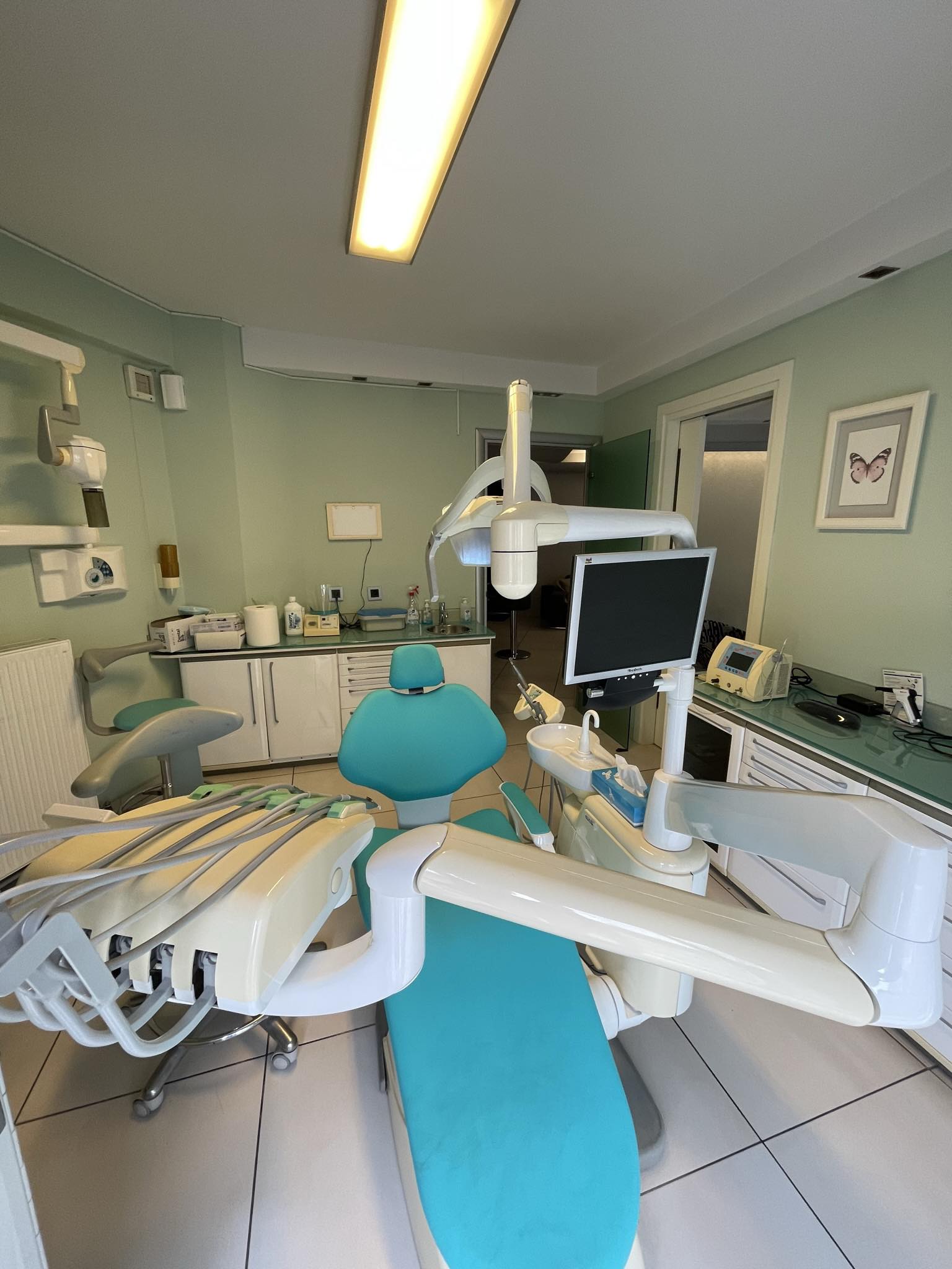 Το ιατρείο είναι πλήρως εξοπλισμένο σύμφωνα με τις απαιτήσεις της σύγχρονης οδοντιατρικής. Πέρα από τον βασικό εξοπλισμό, διαθέτουμε σύγχρονες τεχνολογίες, όπως ψηφιακό scanner και laser, που επιτρέπουν ακριβέστερη διάγνωση, αποτελεσματικότερες θεραπείες και μεγαλύτερη άνεση για τον ασθενή. Η χρήση προηγμένων μεθόδων συμβάλλει στη μείωση του χρόνου θεραπείας και στη βελτίωση του τελικού αποτελέσματος.